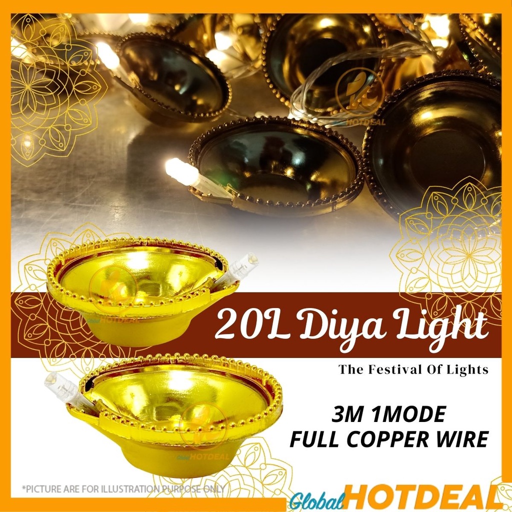 GOLDEN 20L Deepak Diya LED Fairy String Light Diwali Festival